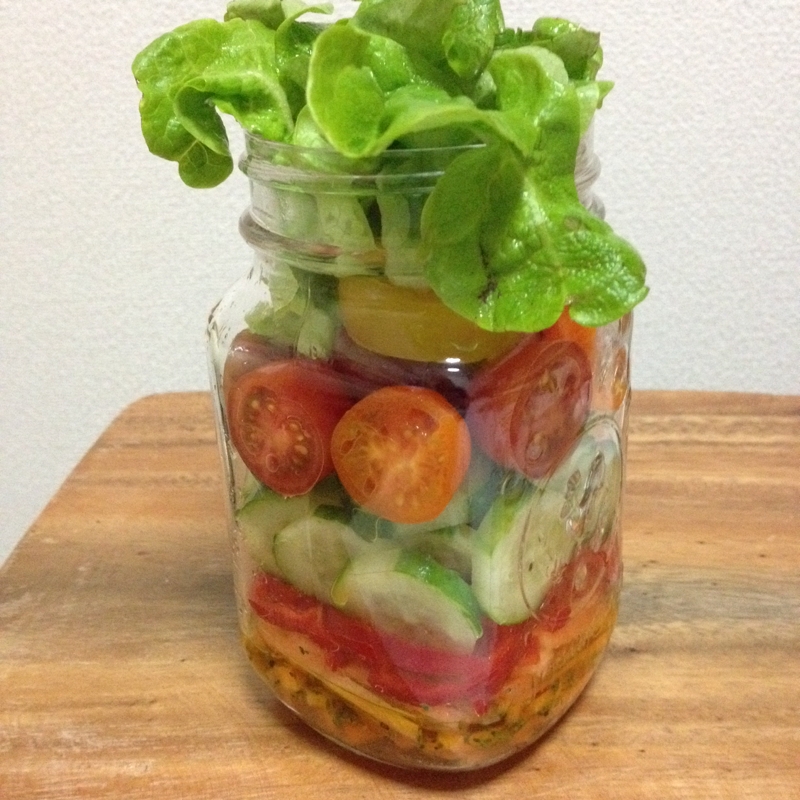からしドレッシングで 夏野菜たっぷりメイソンジャーサラダ ゴンママ日記